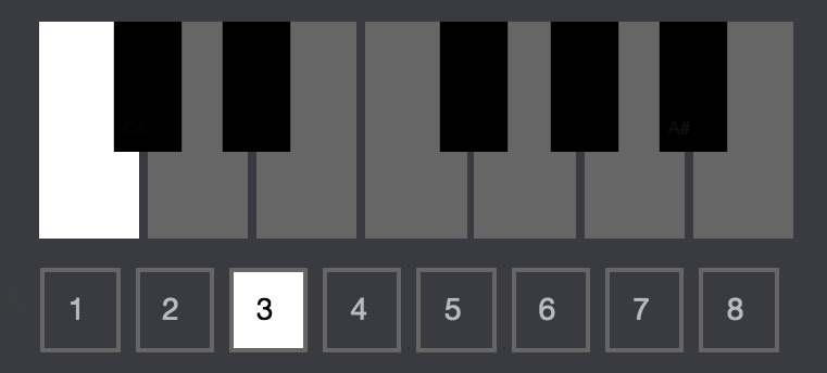 Above note selector is laid out as a standard keyboard and shouldn't be too surprising! You can select the 12 notes that are available within a single octave, starting on C.
